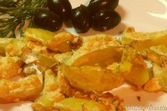 Иногда случаются такие ситуации, когда для приготовления того или иного блюда необходимы только желтки. Так вот оставшиеся белки очень удачно подойдут для запекания вкуснейшей хрустящей картошечки. Это один из самых простых и любимых гарниров моей семьи. Надеюсь, понравится и вам!