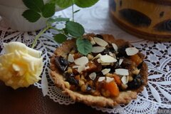 Достаточно простой в приготовлении десерт к чаепитию, состоящий из печеной корзиночки, наполненной кусочками сухофруктов и орешков!