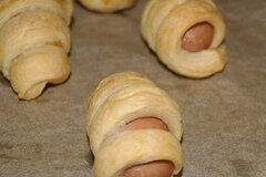 Хрустящее тесто и сочные сосиски никого не оставят равнодушными. Наша семья любит это блюдо готовить по выходным и кушать перед просмотром кино.