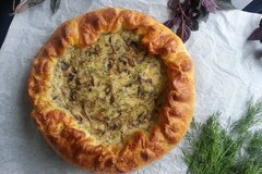 Очень нежный пирог из картофельного теста. Можно подавать как гарнир или как закуску на праздничном столе.