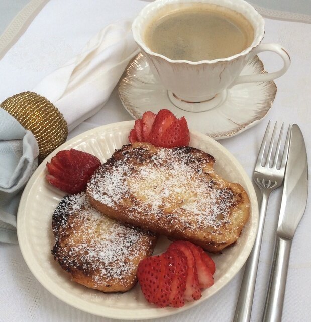 Это очень простое блюдо из минимального количества ингредиентов, которое хорошо подойдет на завтрак, когда к субботнему утру недельные запасы в холодильнике изрядно истощились, идти в магазин как-то рановато, да и желания нет, а яичница с бутербродами вряд ли удивит домочадцев. В детстве я ел их под простым названием — гренки из батона. Но если вы подадите их со свежими ягодами или фруктами, то у вас получатся самые что ни на есть изысканные французские тосты :-)