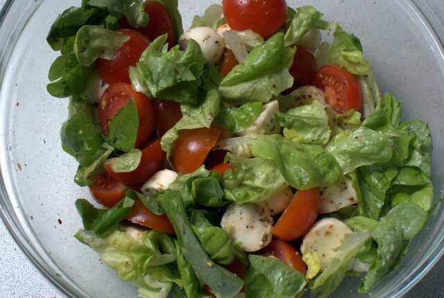 Это простая итальянская закуска состоит всего из трех ингридиентов- сыра моцарелла, помидора и базилика. Со временем, в моей семье она трансформировалась в полноценный салат, который мы используем как легкий ужин или завтрак по выходным. Салат получается легким, но, в то же время, сытным из-за наличия сыра и щедрой заправки оливковым маслом.
