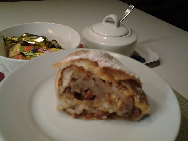 Раньше я думала, что приготовить штрудель - это сложно, а на деле оказалось - проще простого! Теперь пеку регулярно, благо набор продуктов довольно простой, а в результате - отличный десерт к чаю! Понравится тем, кто любит минимум теста и максимум начинки!
