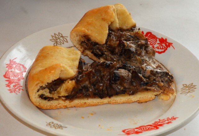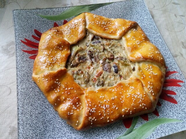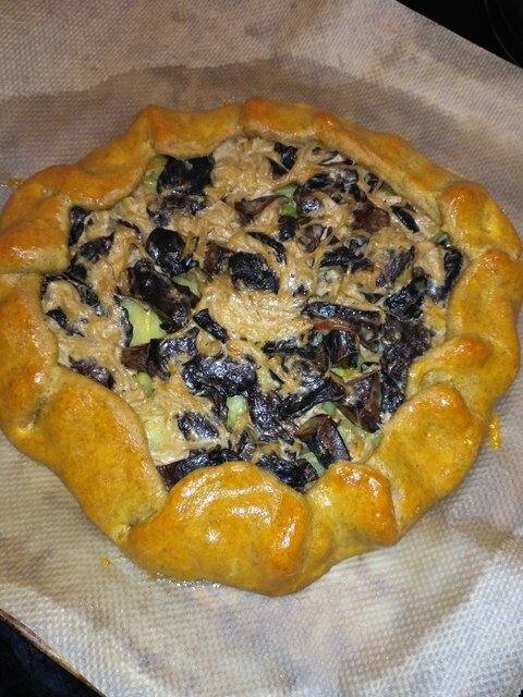Галета, открытый пирог с разнообразными начинками. Родина галеты-Франция. Галета может быть с самой разнообразной начинкой от мяса и рыбы до сладких ягод. Предлагаю Вам галету с грибной начинкой. Эту начинку также можно использовать в пасте, или подать к картофельным драникам.