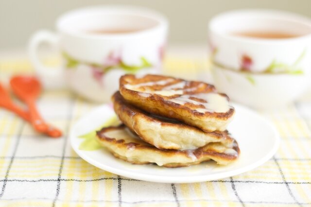 Выкладываем на тарелку. И зовем всех пить чай! Далее каждый уже сам решает, с чем кушать оладушки: с вареньем, сгущенкой, присыпанные пудрой или просто посыпанные сверху сахарным песком! Приятного аппетита.