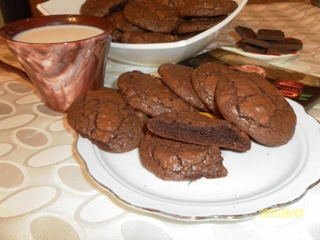 Печенье получается мягкое внутри и немного хрустящее снаружи, очень шоколадное. Нереально вкусно с молоком, сложно заставить себя остановиться и не съесть все сразу :) Честно-честно, предлагаю приготовить и убедиться в этом. Приятного аппетита!