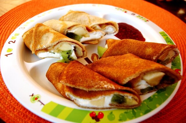 Несколько раз пробовала сладкие роллы в разных заведениях и больше всего мне понравились такие роллы из блинов. Решила попробовать приготовить их сама и поделиться результатом с вами. Это очень вкусное блюдо, готовится оно достаточно просто, а выглядит необычно и красиво.