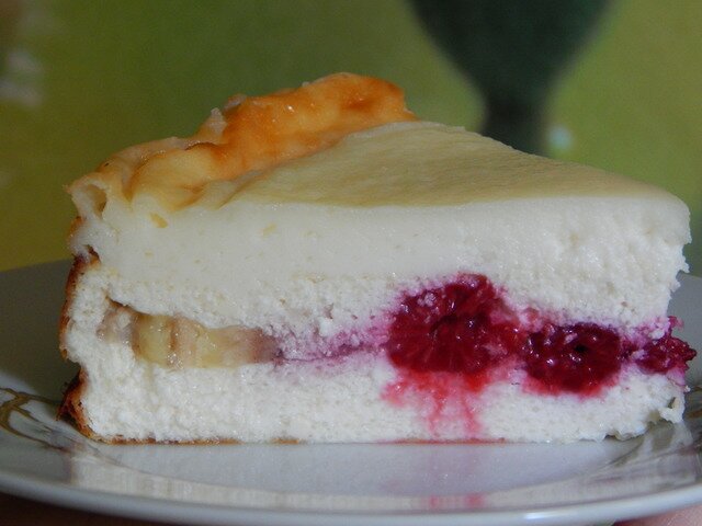 Нежная и вкусная запеканочка: творожная основа с сочными ягодами, покрытая сладкой, кремообразной заливкой. Для меня она оказалась полноценным десертом, да и детки ели с удовольствием!