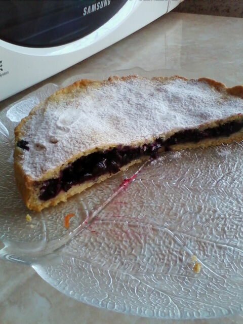 В данном пироге нет ни яиц, ни сливочного масла и сметаны, но это не помешало ему быть вкусным :) Пирог в меру сладкий, с кисло-сладкой смородиновой начинкой. Тесто по вкусу напоминает песочное, мягкое внутри и с плотной корочкой снаружи.