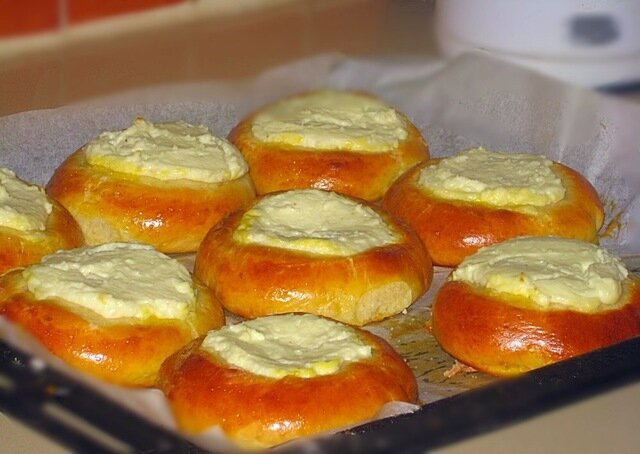 Кисло-сладкая мякоть печеного яблока, дополненная сладкой творожной начикой с коричным ароматом - вкуснооо!