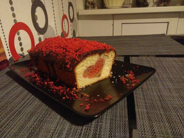 Моим деткам-шокоголикам этот кекс очень понравился, я его дополнительно, специально для них, покрыла сверху шоколадным ганашем. И услышав про сюрприз, немного погадав, что же внутри: конфетка или игрушка, были удивлены, обнаружив внутри розовое сердечке, от мамы с любовью :)