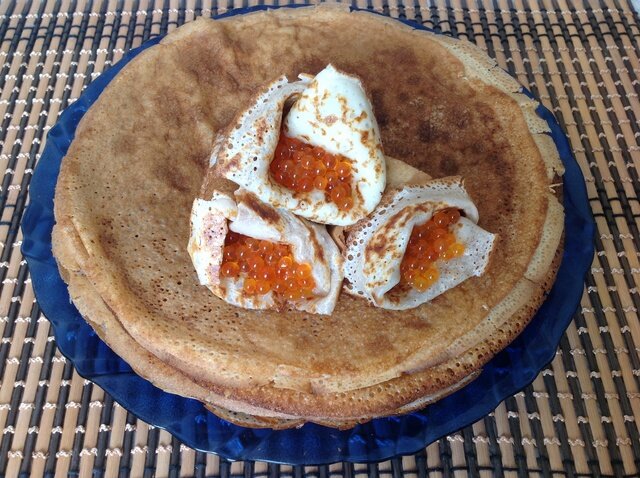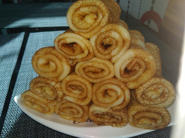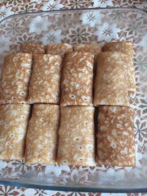 Сами блинчики получаются пушистыми, тоесть не совсем тонюсенькими!)