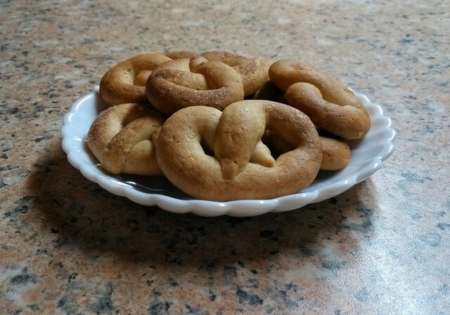 Мои домочадцы раньше очень любили импортное печенье в круглых железных коробках. Но когда я им испекла такие крендельки, они понравились им настолько, что покупному печенью в железной коробке было сказано твердое "НЕТ" :) Тесто делается за считанные минуты, лепить крендельки легко, а если есть помощники, то и очень быстро. Так что буквально 30 минут потраченного времени и можно садиться пить чай! Ну и продукты, как я люблю- простые и доступные. В общем, очень я вам рекомендую попробовать такие домашние сладенькие кренделечки!