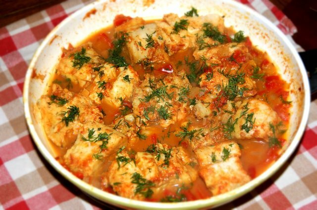 "Храйме"-популярное в странах Магриба, а также в Израиле марокканское блюдо. Представляет собой рыбу, тушёную в остром томатном соусе со специями. Оригинальные источники указывает, что рыба должна быть только морская, но это не принципиально. Но что я настоятельно рекомендую, так это использовать именно рыбное филе без костей. Храйме не из тех блюд что едят руками, как вы уже поняли. Количество острого перца естественно можно регулировать по своему вкусу, но блюдо должно оставаться хоть немного но острым, в этом его суть. Подается по примеру шакшуки с белым хлебом, халой или питой и как правило без гарнира.