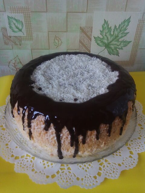 Многие источники советуют поместить бисквит например в кастрюлю немногим больше по диаметру. Я просто открываю форму в которой готовил, вынимаю дно, ставлю вниз тарелку, и в нее помещаю бисквит.(форма остаётся открытой) Часто накалываем его вилкой или зубочисткой и ложкой начинаем поливать его заливкой, давая ей время впитаться.